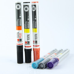 Textilmalfarbe für Baumwolle Preis 3,00 € Vorschau Weiß Gelb Zitronengelb Aprikose Korallenrot Karminrot Silber Brombeere Pink Violett Blass (Flieder) Hellblau Blau Dunkelblau Hellgrün Saftgrün Dunkelgrün Braun Dunkelbraun Schwarz Gold Rosé Gold Karibikblau